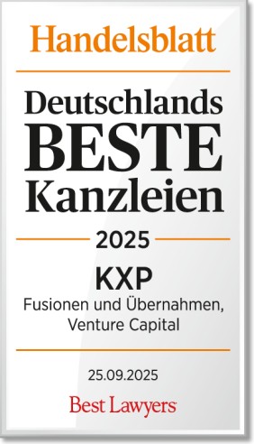 Many of our clients come to us through referrals from fellow professionals and long-standing clients who know our work firsthand. This trust is also reflected in leading industry rankings: Handelsblatt and Best Lawyers in Germany have listed our firm since 2021, with Dr. Claudio Kühn (Venture Capital and M&A) and Juliana Christ (Venture Capital) regularly recognized as leading experts. Best Law Firms has featured KXP since its inaugural edition. Moreover, Wirtschaftswoche, one of Germany’s premier business publications, ranks us among the best corporate law firms and named Claudio a Top Lawyer in 2025.